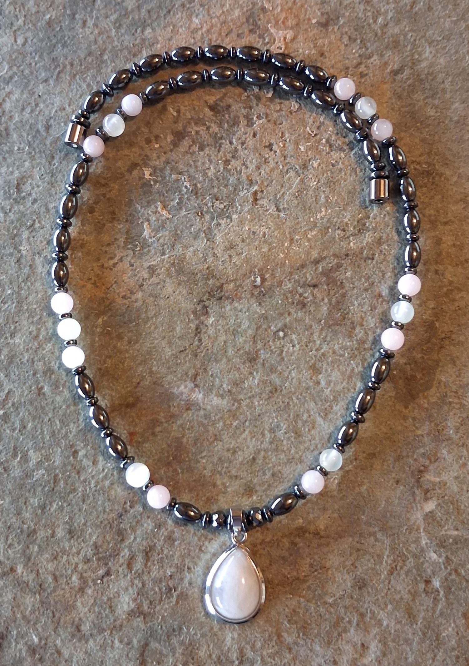 Strong magnetic clasp. Ships in a velvet pouch with an insert explaining the energetic properties of the stones.